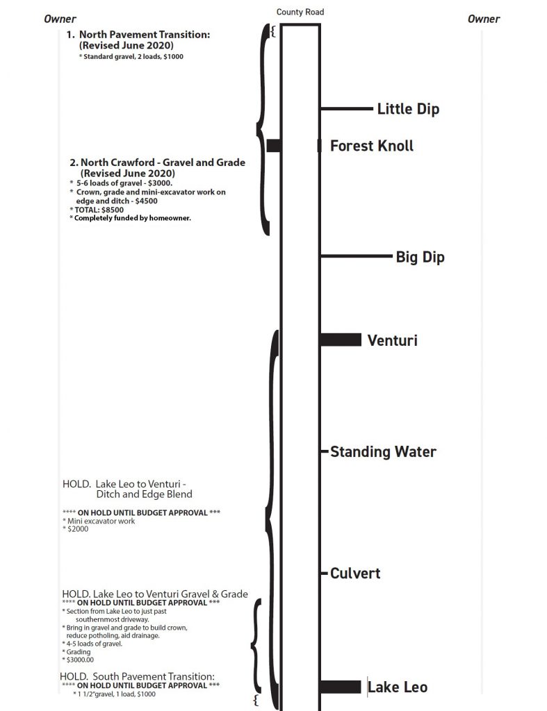 Even so, chip sealing the entire road would have cost nearly $100,000 and would have required a special assessment—something the Board and many residents were hoping to avoid.