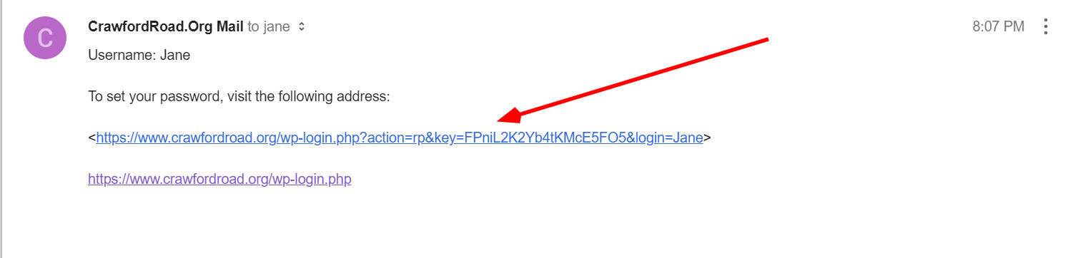 3. A registration email will be sent to you.  Depending on your mail client, it may look slightly different than the picture below, but it will have a link in it.  Click that link (indicated by red arrow).