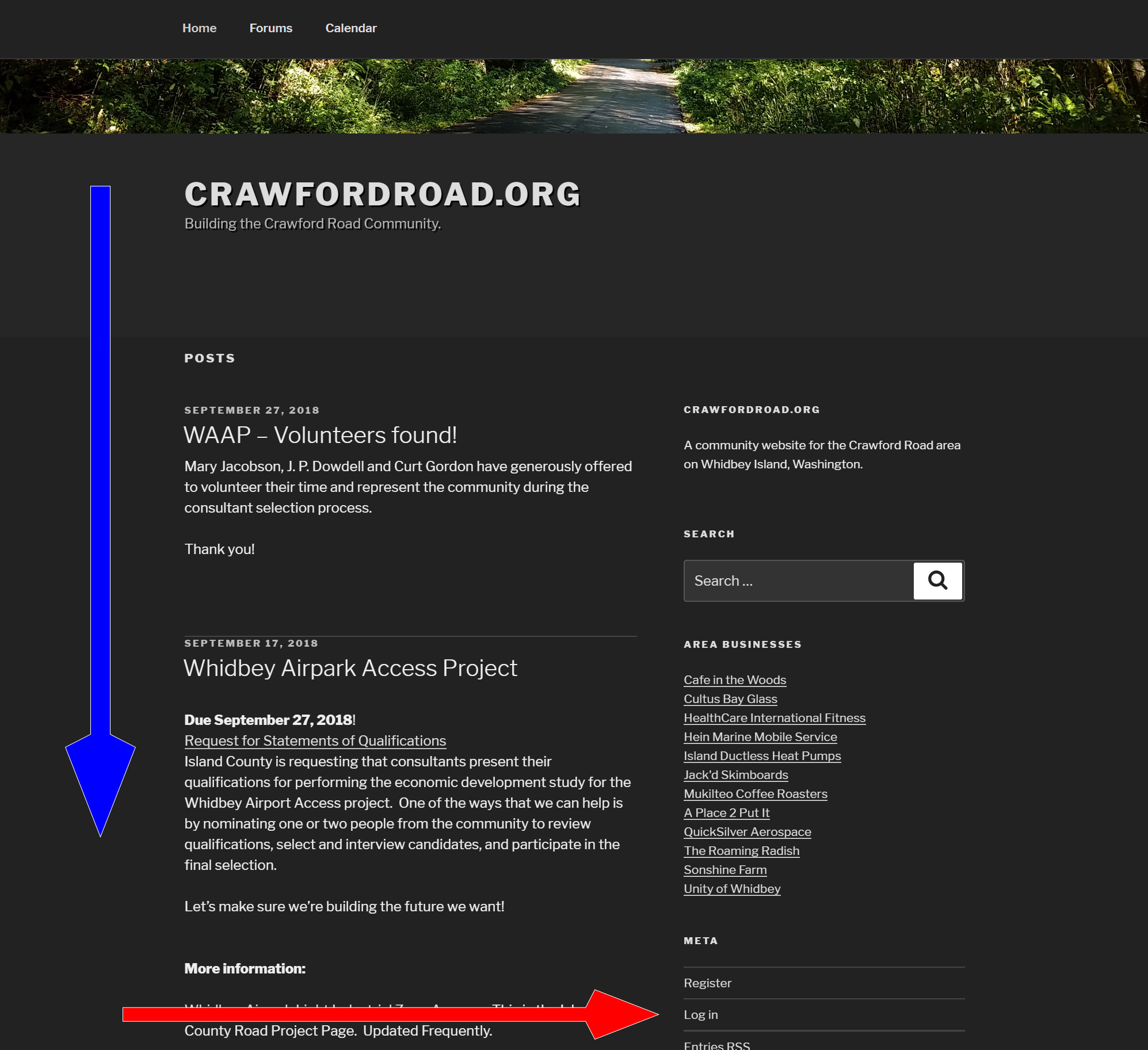 5a. Alternately, you can go to the home page and scroll down (blue arrow) and then click “Log in” (red arrow).  You’ll be directed to the login page, above.