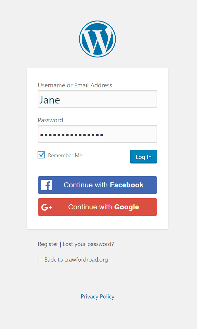 5.  Log in using your username and password you just created.  If you click “Remember Me”, you won’t have to log in each time you visit the site.